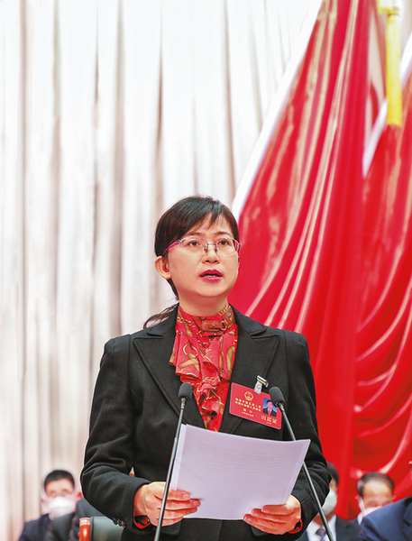 市人大常委會主任、大會主席團常務主席陳寧主持會議。 (本報記者 李小龍 攝)
