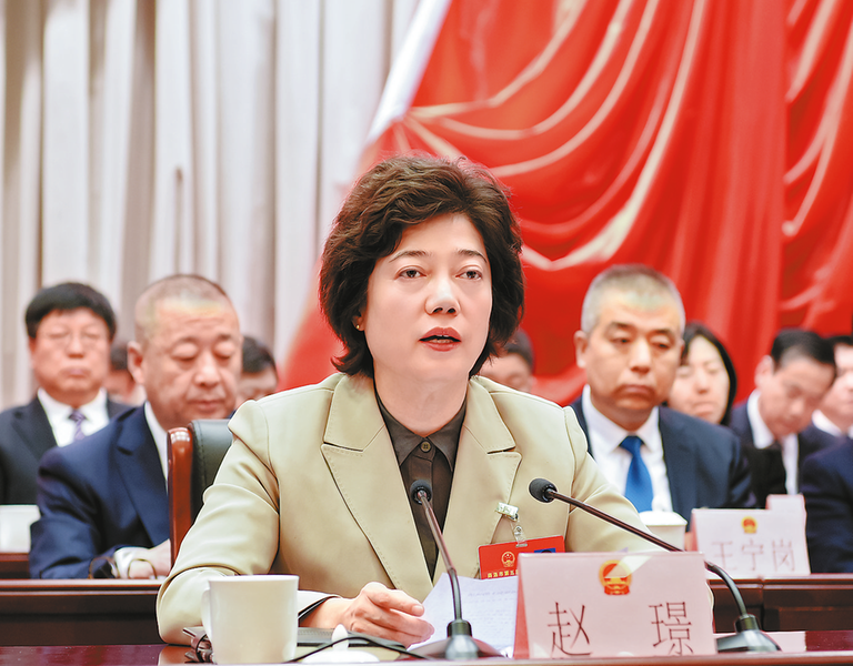 3月1日上午,商洛市第五屆人民代表大會(huì)第五次會(huì)議在商州勝利閉幕。市委書(shū)記、大會(huì)主席團(tuán)常務(wù)主席趙璟在會(huì)上講話。(本報(bào)記者 李小龍 攝)