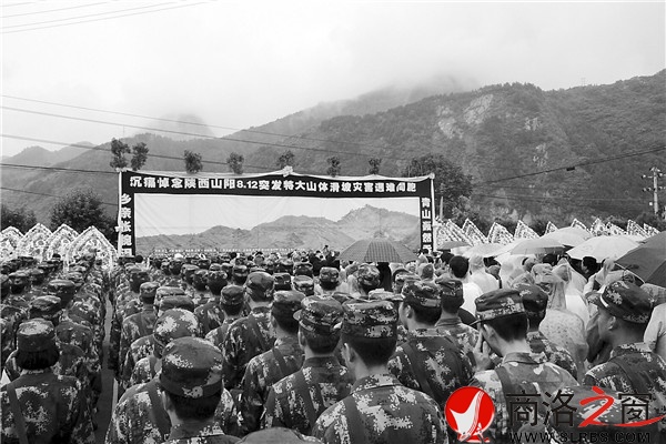 胡潤澤在致悼詞時(shí)指出,山陽“8·12”突發(fā)特大山體滑坡災(zāi)害,災(zāi)情之重、傷亡之多、損失之大,在全市乃至全省同類災(zāi)害中都很少見。災(zāi)害發(fā)生后,黨中央、國務(wù)院高度重視,習(xí)近平總書記、李克強(qiáng)總理、張高麗副總理,國務(wù)委員楊晶、王勇、郭聲琨等領(lǐng)導(dǎo)同志分別作出重要批示;國土資源部姜大明部長、汪民副部長先后率領(lǐng)國務(wù)院工作組和國家頂級地質(zhì)災(zāi)害專家,趕赴災(zāi)害現(xiàn)場查看災(zāi)情、指導(dǎo)搶險(xiǎn)救援工作,充分體現(xiàn)了黨中央、國務(wù)院對受災(zāi)群眾的親切關(guān)懷,對人民群眾生命安全的高度負(fù)責(zé)。省委、省政府高度重視搶險(xiǎn)救援工作。省委書記趙正永先后兩次作出重要批示,要求我們?nèi)λ丫龋龊蒙坪蠊ぷ鳎?3日下午又親臨受災(zāi)現(xiàn)場,實(shí)地查看災(zāi)情,慰問救援人員,并召開專題會議,安排部署搶險(xiǎn)救援工作。省長婁勤儉得知災(zāi)情后,迅速作出批示,于12日清早從銅川趕赴山陽,連續(xù)3天多次深入受災(zāi)現(xiàn)場,聽取災(zāi)情匯報(bào),3次召開救援工作緊急會議,傳達(dá)中央領(lǐng)導(dǎo)和正永書記批示精神,就人員搜救、次災(zāi)防范、善后安置、社會穩(wěn)定等方面工作,進(jìn)行安排部署,提出明確要求。副省長莊長興于12日上午從渭南第一時(shí)間趕赴現(xiàn)場,連續(xù)5天5夜堅(jiān)守一線指揮,8次深入現(xiàn)場查災(zāi),先后6次召開協(xié)調(diào)會商會議,從15日起又在救援現(xiàn)場設(shè)立指揮部,具體組織搶險(xiǎn)救援工作。常務(wù)副省長姚引良、副省長杜航偉、姜鋒等領(lǐng)導(dǎo)同志也先后作出批示和安排。省軍區(qū)副司令員戚智學(xué)、省武警總隊(duì)司令員王春新始終堅(jiān)持與廣大官兵一道,深入災(zāi)區(qū)一線,現(xiàn)場指揮,親自參戰(zhàn),不分晝夜搶險(xiǎn)救災(zāi)。廣大武警、消防官兵和駐陜部隊(duì)及民兵預(yù)備役,快速奔赴現(xiàn)場,頭頂巨石、不畏艱險(xiǎn),爭分奪秒、頑強(qiáng)奮戰(zhàn),特別是武警交通五支隊(duì)緊急從尼泊爾地震搶險(xiǎn)救災(zāi)前線趕赴山陽,顧不上片刻休息,就立即投入搶險(xiǎn)救援,發(fā)揮了勇于當(dāng)先的主力軍作用。省國土、公安、安監(jiān)、衛(wèi)計(jì)、民政、交通等相關(guān)部門抽調(diào)強(qiáng)有力的工作力量,第一時(shí)間趕赴現(xiàn)場,參與搶險(xiǎn)救援工作;省政府緊急抽調(diào)省地調(diào)院、省測繪局、西安地調(diào)中心、武警黃金五支隊(duì)、長安大學(xué)、中核集團(tuán)等省內(nèi)相關(guān)領(lǐng)域?qū)<液蛯I(yè)技術(shù)人員224人,趕赴災(zāi)區(qū),指導(dǎo)制定搶險(xiǎn)救援方案,實(shí)地排查地質(zhì)災(zāi)害隱患,全面進(jìn)行科學(xué)、高效、安全救援,在較短時(shí)間內(nèi)集結(jié)了800多人的搶險(xiǎn)救援大軍,形成了眾志成城、萬眾一心、搶險(xiǎn)救災(zāi)的強(qiáng)大合力。