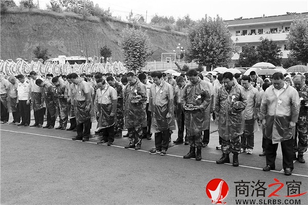 上午10時(shí),哀悼活動正式開始,原本陰沉的天空突然下起了大雨,這一刻,江河含悲,天地同哀,時(shí)間凝固,悲痛定格。伴隨著《獻(xiàn)花曲》深情的旋律,莊長興、戚智學(xué)、王春新、徐升、胡潤澤等領(lǐng)導(dǎo)上前仔細(xì)整理花籃上的緞帶后,全場肅立,向山陽“8·12”突發(fā)特大山體滑坡災(zāi)害遇難同胞默哀。