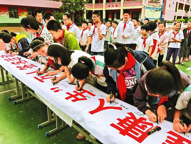 秋季開學(xué)伊始,洛南縣城關(guān)派出所以創(chuàng)建﹃無毒社區(qū)、無毒村、無毒單位、無毒校園﹄為目標(biāo),深入轄區(qū)學(xué)校開展法制禁毒宣傳教育進校園活動,城區(qū)各中小學(xué)師生共一萬余人參加,發(fā)放宣傳資料六千余份。(石軍平 攝)