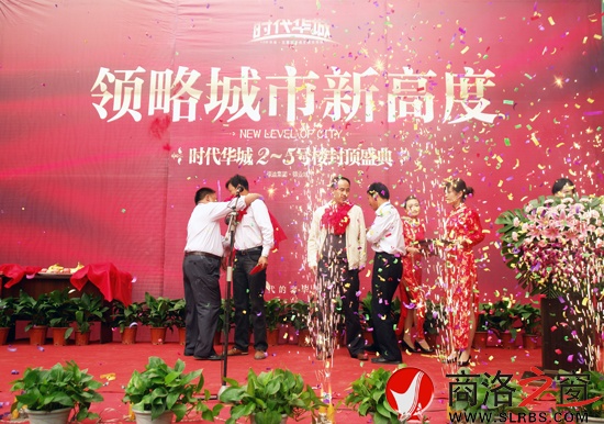 封頂儀式上錦業(yè)地產(chǎn)劉昌年總經(jīng)理詳細(xì)解說了時(shí)代華城專注高尚人居領(lǐng)域的開發(fā)理念,以及項(xiàng)目超越傳統(tǒng)居住的細(xì)節(jié)落實(shí);承建商浙江小九天及陜西大成監(jiān)理公司領(lǐng)導(dǎo)也上臺(tái)發(fā)言,表示會(huì)繼續(xù)嚴(yán)把質(zhì)量關(guān),力求把時(shí)代華城打造成商洛的精彩工程、形象工程。最后,在鞭炮聲和禮花炮聲中,綠迪集團(tuán)劉總、劉部長(zhǎng)與建筑、監(jiān)理公司領(lǐng)導(dǎo)共同啟動(dòng)了時(shí)代華城的封頂儀式。