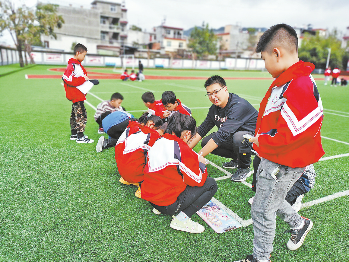 體育課上,他與學生游戲玩樂,讓學生在歡聲笑語中鍛煉身體,放松身心。“前段時間學校召開運動會,戰(zhàn)老師可把力氣出了,每天兩次雷打不動的訓練,才有了最后的出色表現(xiàn)。戰(zhàn)老師特別有愛心,經(jīng)常為學生系紅領(lǐng)巾、系鞋帶,工作也十分踏實賣力,老師和學生都特別喜歡他。”丹鳳社科希望小學校長胡來存告訴記者。