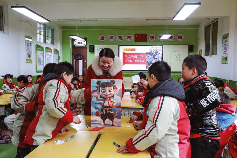 當(dāng)日,商州區(qū)第三小學(xué)四年級(jí)三班開展“哪吒精神點(diǎn)亮新學(xué)期”主題班會(huì)。班主任張文靜化身“心靈導(dǎo)師”,把熱播動(dòng)畫《哪吒之魔童降世》融入課堂,幫助學(xué)生從“假期模式”切換到“校園模式”。
