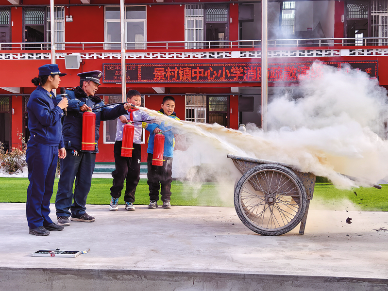 “著火了,著火了,孩子們快低頭,用濕毛巾捂住口鼻,撤離教室疏散到開(kāi)闊地帶。”景村鎮(zhèn)中心小學(xué)的消防疏散演練中,老師組織學(xué)生有序撤離冒著濃煙的模擬著火點(diǎn),疏散至操場(chǎng)開(kāi)闊地帶。“油著火了不能用水滅火”“電器著火要切斷電源”……學(xué)生在操場(chǎng)上你一句我一句地交流著學(xué)到的消防知識(shí)。洛南縣消防救援大隊(duì)消防宣傳員穆曉說(shuō):“開(kāi)學(xué)后,我們第一時(shí)間深入轄區(qū)中小學(xué)、職業(yè)中學(xué)、幼兒園等,通過(guò)消防安全公開(kāi)課、消防主題班會(huì)、消防安全知識(shí)大講堂等形式開(kāi)展消防安全知識(shí)培訓(xùn)。”洛南縣景村鎮(zhèn)中心小學(xué)副校長(zhǎng)陳衛(wèi)紅表示:“開(kāi)學(xué)第一課讓學(xué)生掌握、牢記消防安全知識(shí)對(duì)于未成年人尤為重要,通過(guò)學(xué)習(xí)和演練學(xué)生已經(jīng)熟練掌握了消防常識(shí),在生活中將會(huì)更好地保護(hù)自己。”