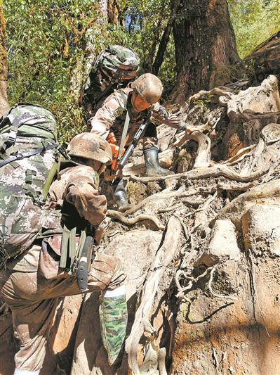 巡邏路上,會遇到很多大大小小的斷崖。每一次,侯云都先爬上去,再把戰(zhàn)士一個個拉上來。而到了危險的濕滑陡坡,他會留在隊伍后面,把戰(zhàn)士一個個推上去。