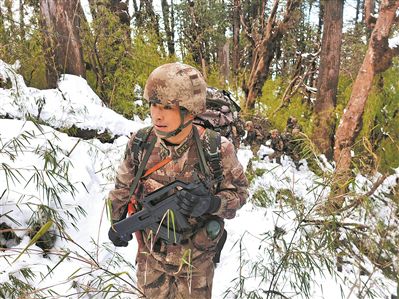 團長侯云走在隊伍的最前頭。任現(xiàn)職前,他曾兩次帶隊參加國際軍事比賽,征服過歐洲最高峰厄爾普魯士山,對登山很有經(jīng)驗。當團長后,每次參加武裝巡邏,他都在前面開路。