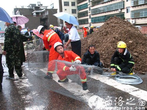 凌晨4時許,縣城東邊的十里鋪鄉(xiāng)磨溝口等村和城關(guān)鎮(zhèn)鬲家村、甘溝口、東關(guān)、西關(guān)等24個村相繼告急。泥漿漫進(jìn)了商店,淤泥堵塞了街道,浮沫雜物散落、大橋被毀懸空,樹木攔腰折斷,河堤不時垮塌,公路路基被掏空,民宅墻基被撕裂,大片良田被蠶食。在暴雨洪水接連的沖擊下,縣城東邊的甘河口處,公路被沖擊出了4000多方的大塌陷,堅固厚實的公路被掏的只剩下不到一米寬,如若出現(xiàn)閃失,就會危及整個山陽縣城居民的生命和財產(chǎn)安全。在第一時段的關(guān)鍵時刻,山陽縣委、政府及時啟動防汛預(yù)案,縣級領(lǐng)導(dǎo)及包鄉(xiāng)部門干部210人立即分赴各鄉(xiāng)鎮(zhèn)查看災(zāi)情,組織指揮搶險救災(zāi)。縣委書周青海、縣長楊萌堅守在保衛(wèi)縣城的抗洪搶險一線,對城區(qū)出現(xiàn)的險情,緊急撤離安置群眾2300多人,組織民兵預(yù)備役、消防武警官兵及干部群眾共1000余人,成立3個搶險救災(zāi)突擊隊,投入縣河堤防搶險,24小時連續(xù)奮戰(zhàn),確保盡快排除縣河護(hù)城河堤險情。