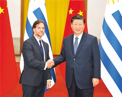 習(xí)近平指出,2023年是中烏建交35周年和烏拉圭加入共建“一帶一路”倡議5周年。建交35年來,兩國(guó)始終堅(jiān)持相互尊重、平等相待、合作共贏,各領(lǐng)域交流合作蓬勃發(fā)展。特別是面對(duì)新冠疫情,兩國(guó)守望相助、同心抗疫,中烏戰(zhàn)略伙伴關(guān)系得到升華。中方愿同烏方一道,以建立全面戰(zhàn)略伙伴關(guān)系為新起點(diǎn)、新坐標(biāo),提升雙邊關(guān)系水平,豐富兩國(guó)合作內(nèi)涵,將中烏關(guān)系打造成為不同體量、不同制度、不同文化國(guó)家團(tuán)結(jié)合作的典范,更好服務(wù)各自國(guó)家發(fā)展,增進(jìn)兩國(guó)人民福祉。