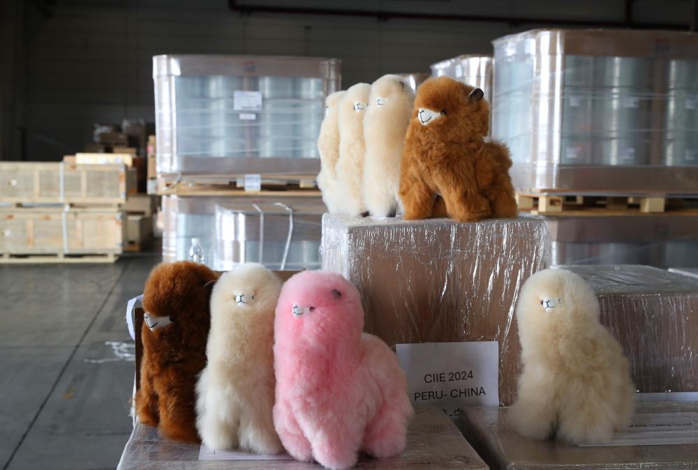 10月14日拍攝的運(yùn)抵中遠(yuǎn)海運(yùn)自有倉(cāng)庫(kù)的“溫暖駝”產(chǎn)品。當(dāng)日,中遠(yuǎn)海運(yùn)承運(yùn)的第七屆進(jìn)博會(huì)海運(yùn)首單展品秘魯“溫暖駝”系列產(chǎn)品由洋山港碼頭運(yùn)抵中遠(yuǎn)海運(yùn)自有倉(cāng)庫(kù),隨后改換短駁廂式車送往客戶公司。新華社記者方喆攝