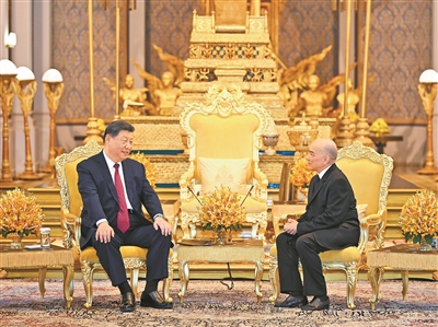 習(xí)近平指出,很高興在西哈莫尼國王登基20周年和柬歷新年之際應(yīng)邀訪問美麗的柬埔寨,謹(jǐn)向柬埔寨人民致以新年祝福。柬埔寨國家建設(shè)事業(yè)蒸蒸日上,相信在西哈莫尼國王庇佑下,勤勞智慧的柬埔寨人民一定能把國家建設(shè)得更加繁榮富強(qiáng)。