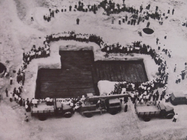 位于曾都區(qū)城西的擂鼓墩是又一處密集分布的戰(zhàn)國時期曾國高等級貴族墓群,曾侯乙墓就靜靜地躺在這里的一處坡崗上。俯瞰深達(dá)13米的墓葬原址,不規(guī)則多邊形的槨室形制分東、中、北、西四室,由底板、墻板、蓋板共171根巨型長方梓木和櫸木壘迭套接而成。