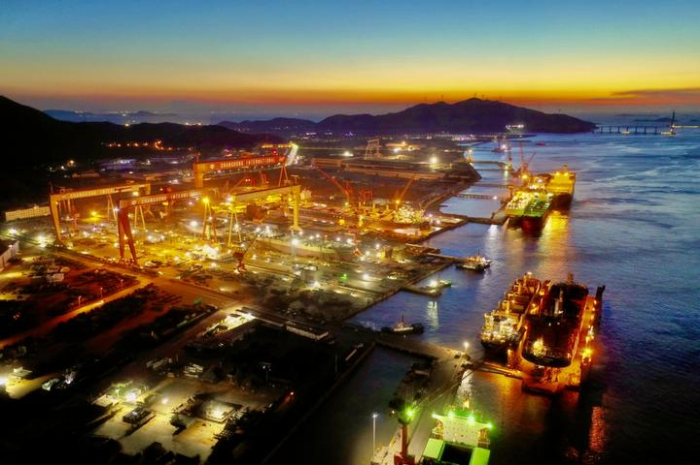 最近10余年間,長江村開啟產(chǎn)業(yè)攀高逐綠之路。先是從“長江邊”轉(zhuǎn)戰(zhàn)“大海邊”,在浙江舟山投資超百億元,建成占地近5000畝、擁有5公里海岸線的集拆船、修船、造船為一體的舟山長宏國際產(chǎn)業(yè)園。目前,這一產(chǎn)業(yè)園產(chǎn)值已超百億元。