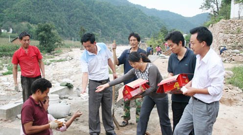 桃坪鄉(xiāng)今年7月23日遭受了特大暴雨洪水襲擊,接經(jīng)濟損失達9680萬元。災(zāi)情發(fā)生后,當?shù)攸h委、政府帶領(lǐng)群眾積極抗災(zāi)救災(zāi),進行災(zāi)后重建。目前,整個災(zāi)后重建工作已經(jīng)進入沖刺階段。為了確保重建工程保量,鄉(xiāng)黨委、政府決定中秋節(jié)黨員干部一律不放假,深入災(zāi)后恢復(fù)工程第一線,在工地上和農(nóng)民工一道過節(jié)、吃月餅,親手和群眾筑河堤、砌石煉,指揮電纜拉線和栽桿,共同度過一個愉快而有意義的中秋節(jié)。