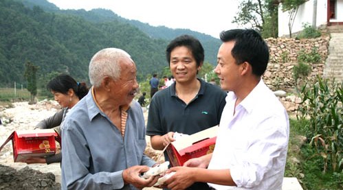 桃坪鄉(xiāng)領(lǐng)導(dǎo)將月餅送到水毀修復(fù)工地農(nóng)民工手中