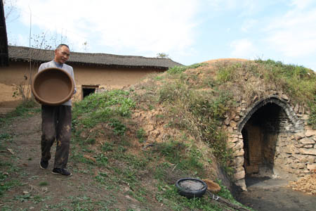 洛南縣景村鎮(zhèn)王山溝村,至今還留有兩口窯,郝悶長(zhǎng)是本村人,自18歲開(kāi)始跟著父輩學(xué)習(xí)制陶,已經(jīng)30個(gè)年頭。
