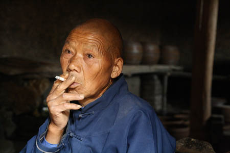 77歲的楊存華也是老制陶人,干了一輩子制陶。“1956年開(kāi)始,手工業(yè)聯(lián)社組織王山溝陶瓷業(yè)合作社。”說(shuō)起這些,楊存華眼睛里閃爍著榮耀,“那時(shí)候十幾個(gè)人在這里干活,最多的時(shí)候8個(gè)輪盤同時(shí)工作。方圓幾百公里的人都在這里訂貨,最遠(yuǎn)有專門從河南過(guò)來(lái)收購(gòu)的。”