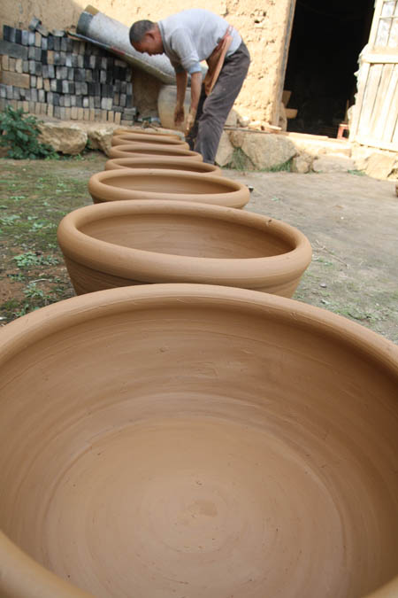 郝悶長(zhǎng)告訴記者,每天能做10個(gè)盆子,每個(gè)盆子能賣7、8元,現(xiàn)在多是外地人上門收購(gòu),本地人買的并不多。以前生意還好,瓦罐、陶盆、砂鍋等都能做,隨著社會(huì)的發(fā)展,現(xiàn)在搪瓷、玻璃、不銹鋼等器具慢慢將陶瓷代替。如今大都做的是陶盆,用作孝子盆。