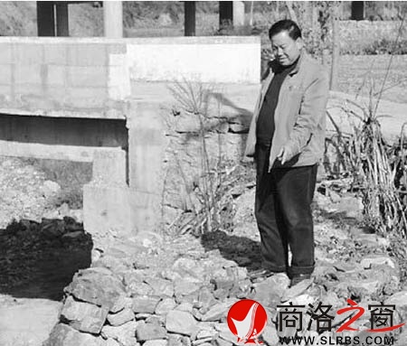 該村地處203省道商山線附近,距山陽縣城十多里地。全村1300余人,有耕地400多畝,河堤是唯一保護(hù)土地和人家安全的屏障。據(jù)土橋村支書王金柱介紹,以前,河床沒下切時,從上游筑壩可以直接把水到地頭,旱澇保收。由于近年來,河床下降近兩米,百余畝水澆地已無法上水,修建的灌溉渠已成擺設(shè)。