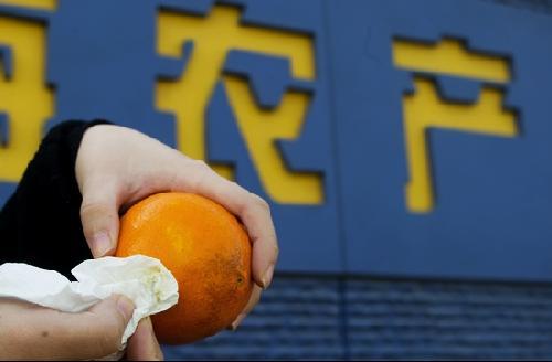 昨天中午,浦東三林工商所得知市民發(fā)現(xiàn)“問題橙”事件后,立即趕往楊高農(nóng)副產(chǎn)品市場,對此事進(jìn)行調(diào)查。目前,浦東三林工商所正對涉嫌染色的橙子進(jìn)行檢查,并要求水果商將涉嫌染色的橙子全部下架封存。同時,浦東工商部門也已經(jīng)對這批涉嫌染色的橙子的源頭進(jìn)行調(diào)查。
