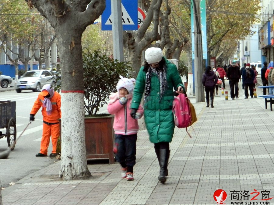 12月15日,拍攝于商州北新街,寒風(fēng)中送孩子上學(xué)。