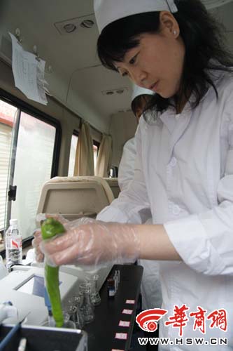 農(nóng)產(chǎn)品的質(zhì)量安全也是群眾關(guān)心的問(wèn)題,在會(huì)議現(xiàn)場(chǎng)記者看到一輛農(nóng)業(yè)產(chǎn)品質(zhì)量檢測(cè)車,工作人員正在忙碌的檢測(cè)商州本地出產(chǎn)蔬菜的質(zhì)量。一檢測(cè)員告訴記者,“經(jīng)過(guò)我們長(zhǎng)期檢測(cè),商州區(qū)本地出產(chǎn)蔬菜全部符合無(wú)公害農(nóng)產(chǎn)品標(biāo)準(zhǔn),并且各項(xiàng)指標(biāo)明顯好于外地蔬菜。”(華商網(wǎng))