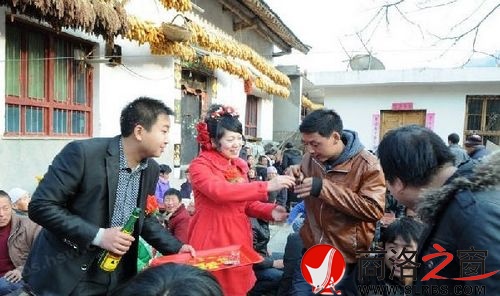 本網(wǎng)訊 (商洛老全 攝)近日,在商洛農(nóng)村一處普通的農(nóng)家小院,一對(duì)新人結(jié)婚了,鄉(xiāng)親們都來喝喜酒。酒很低廉,菜很簡(jiǎn)單,但鄉(xiāng)親們很高興,整個(gè)山村都沉浸在喜慶中,房檐下金黃的玉米也見證著山村愛情。