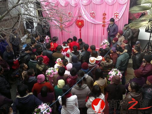 商州區(qū)沙河子鎮(zhèn)紅光村陳家小院舉行新人拜堂儀式