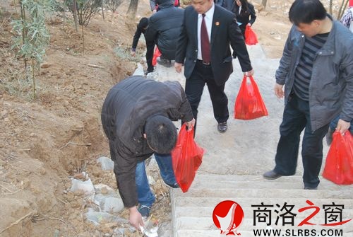3月5日這天上午9點,來自柞水縣團縣委、環(huán)保局、衛(wèi)生局、公安局等單位干部和社會青年志愿者130余人,手提紅色塑料袋、火鉗等工具,對縣城的東坡公園及三道井景區(qū)的白色垃圾進行了撿拾。通過大家近2個小時的努力,東坡公園及三道井景區(qū)的白色垃圾得以全部清理。 (毛淑霞 張曉鋒 攝)