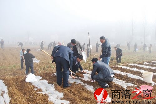 山陽縣直機關五百多名干部職工深入十里鋪鎮(zhèn)鵑嶺村栽種核桃樹苗千余株,幫助當?shù)卮迕癜l(fā)展核桃產(chǎn)業(yè)。(嚴曉鋒 攝)