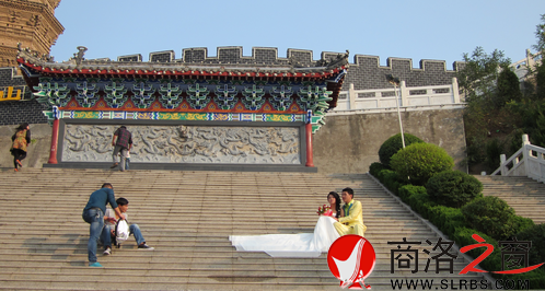 商洛日?qǐng)?bào)訊(記者 李敏)10月3日,國(guó)慶假期期間,山陽(yáng)縣蒼龍山森林公園吸引了不少游客前去游玩,也吸引了不少新婚夫妻前去拍攝婚紗照。圖為一對(duì)新婚夫妻正在蒼龍山豐陽(yáng)塔下拍攝婚紗照。