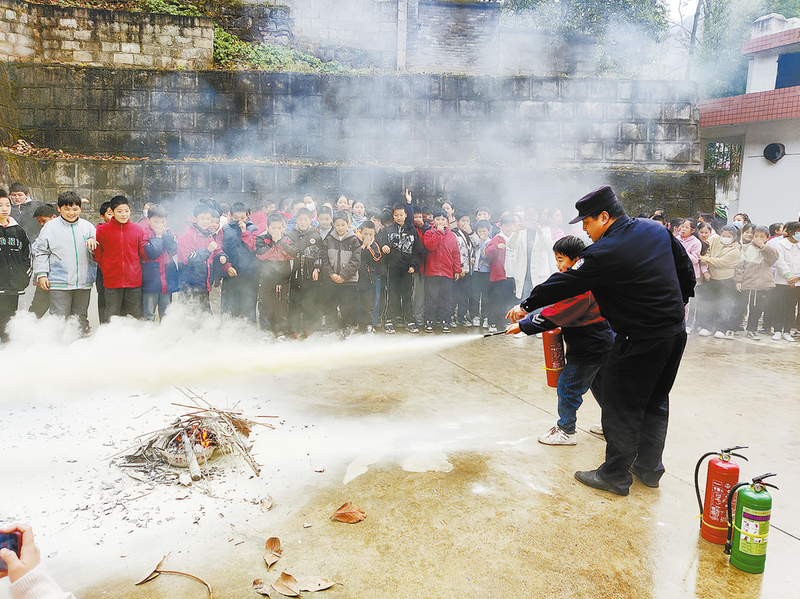 11月9日,鎮(zhèn)安縣公安局西口派出所與西口明德小學(xué)聯(lián)合組織了一場(chǎng)消防應(yīng)急演練。民警為廣大師生現(xiàn)場(chǎng)講解消防基本知識(shí)、逃生注意事項(xiàng)、現(xiàn)場(chǎng)演示滅火器等使用方法和操作要領(lǐng),并指導(dǎo)學(xué)生體驗(yàn)滅火過(guò)程。(本報(bào)通訊員 劉吉濤 攝)