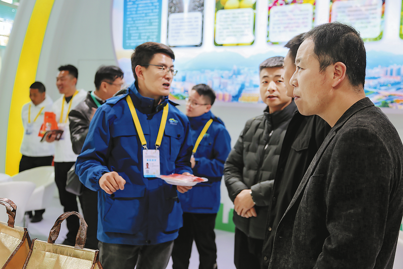 商洛企業(yè)相關(guān)負(fù)責(zé)人在展位前給客商介紹產(chǎn)品