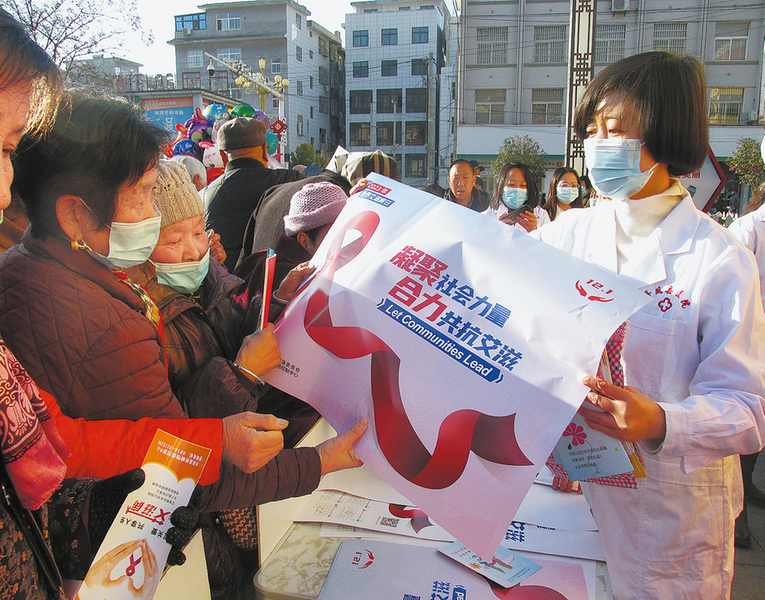 12月1日,山陽縣衛(wèi)健局、縣疾控中心在豐東新區(qū)社區(qū)開展艾滋病防治日宣傳活動,通過發(fā)放艾滋病防治宣傳資料,提高大眾對艾滋病的認(rèn)知和預(yù)防意識。 (本報記者 王孝竹 攝)