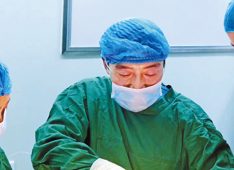 在這種情況下,趙岳峰立即做好術(shù)前準(zhǔn)備,決定由他主刀進(jìn)行手術(shù)。由于患者要做雙側(cè)開顱,手術(shù)時(shí)間長(zhǎng)達(dá)8小時(shí),過(guò)程中他明顯感覺(jué)身體缺氧、頭昏頭痛,最后是吸著氧氣才順利完成手術(shù)。術(shù)后患者恢復(fù)良好,出院時(shí)患者的語(yǔ)言及肢體功能已基本恢復(fù)正常,這也成為阿里地區(qū)人民醫(yī)院第一例顱骨修補(bǔ)術(shù)。3個(gè)月后,他再次成功對(duì)該患者進(jìn)行了雙側(cè)顱骨缺損鈦網(wǎng)修補(bǔ)手術(shù)。