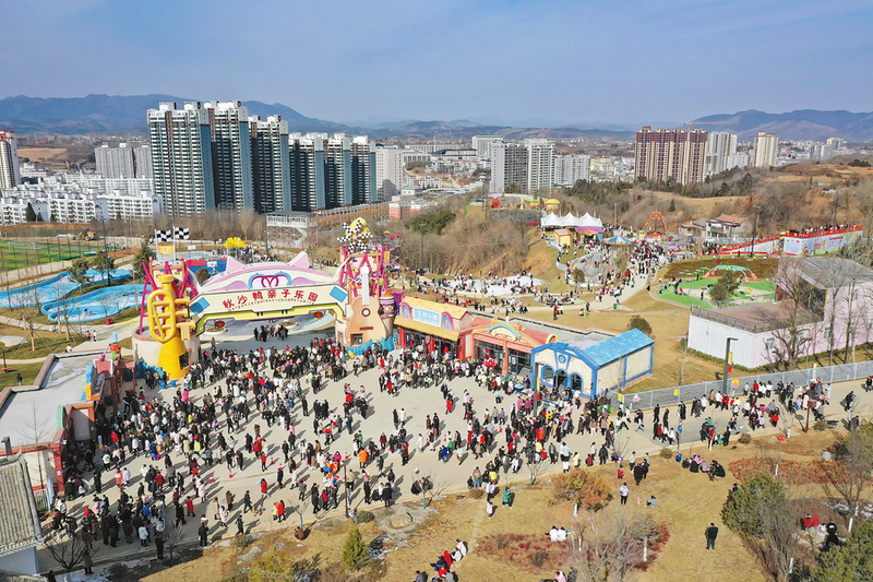 2月15日,在洛南縣音樂小鎮(zhèn)秋沙鴨親子樂園,新春燈會和文藝演出吸引了周邊游客前來打卡。
