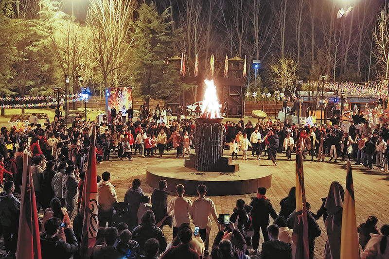 2月16日,丹鳳縣棣花景區(qū)的篝火晚會吸引了眾多游客。