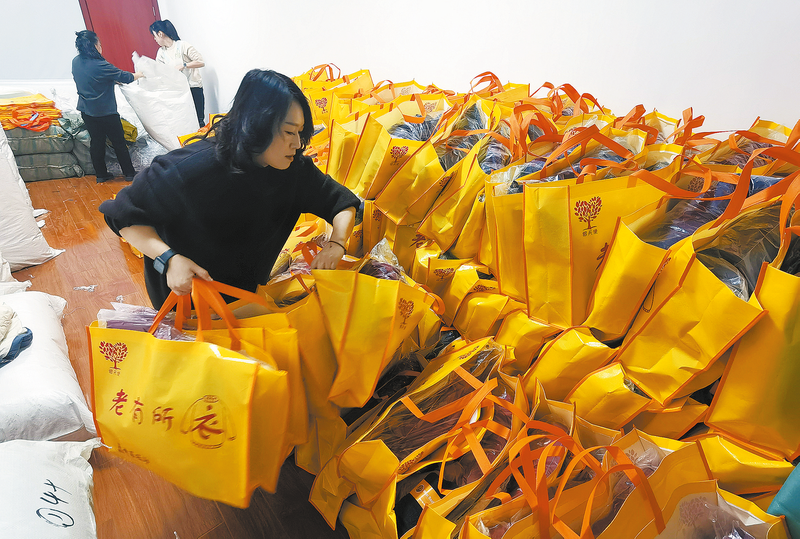 “快來(lái)幫忙抬一下,拿不動(dòng)了!”“慢點(diǎn)搬,裝護(hù)腰的袋子太重了……”1月18日中午,商洛彩虹公益中心的10多名志愿者顧不上吃午飯,就將剛運(yùn)抵商州的一貨車“老有所衣”物資搬運(yùn)到庫(kù)房,并立即把羽絨服、羊毛襪子、護(hù)腰、護(hù)膝進(jìn)行分裝,只為盡快將溫暖包送到山區(qū)老人手中。
