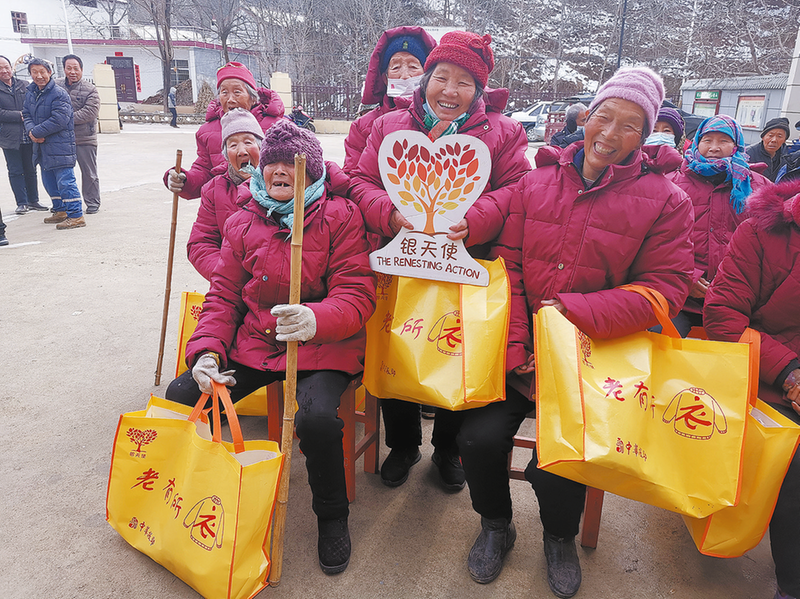 “老有所衣”溫暖包活動(dòng)得到了愛(ài)心企業(yè)的支持。1月31日,丹鳳縣蔡川鎮(zhèn)的老人們喜領(lǐng)溫暖包。