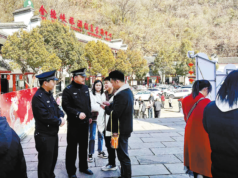 2月16日,商南縣公安局金絲峽派出所民警加強(qiáng)景區(qū)人流秩序疏導(dǎo)和周邊治安巡邏防控。