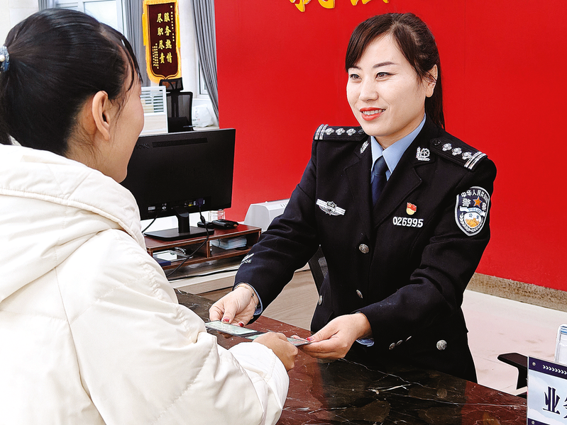 ?3月4日,民警王婷正在為前來換證的駕駛員辦理更換機動車駕駛證業(yè)務(wù)。從警22年的王婷,現(xiàn)任市公安局交通警察支隊車輛管理所駕管科科長,她用熱情的笑容和嚴謹?shù)膽B(tài)度服務(wù)每一名駕駛員。王婷在工作中突出的表現(xiàn)得到了多次嘉獎,2013年被省公安廳評為全省優(yōu)秀人民警察,2014年至2016年連續(xù)3年在年度考核中被評為優(yōu)秀公務(wù)員,榮立個人三等功一次,2018年在省總隊“創(chuàng)佳評優(yōu)”活動中被評為全省優(yōu)秀民警,2023年被省公安廳評為全省優(yōu)秀民警。
