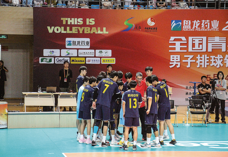5月21日,在市體育館內(nèi),教練正在為隊(duì)員布置戰(zhàn)術(shù)。