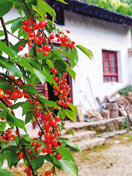 農(nóng)家院落里,鮮艷欲滴的櫻桃十分誘人。