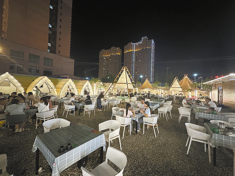 6月21日晚,人們?cè)谏疥?yáng)縣“領(lǐng)頭羊營(yíng)地烤場(chǎng)”品嘗美食,享受夏日閑暇時(shí)光。