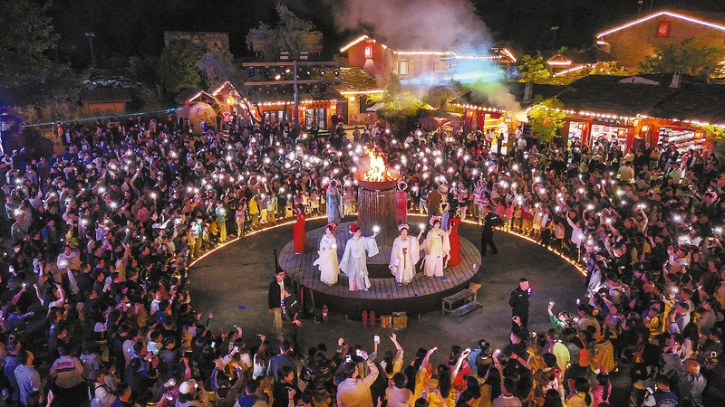 在柞水,孝義文化體驗(yàn)園、終南山寨等景區(qū)依然是網(wǎng)紅打卡點(diǎn)。在這里,游客可以觀看各種演出,還可以在篝火晚會(huì)中盡情釋放自己的熱情。