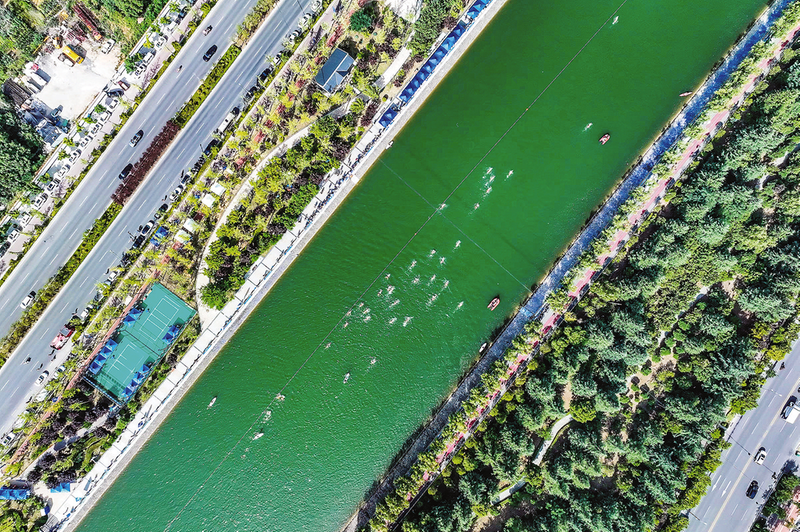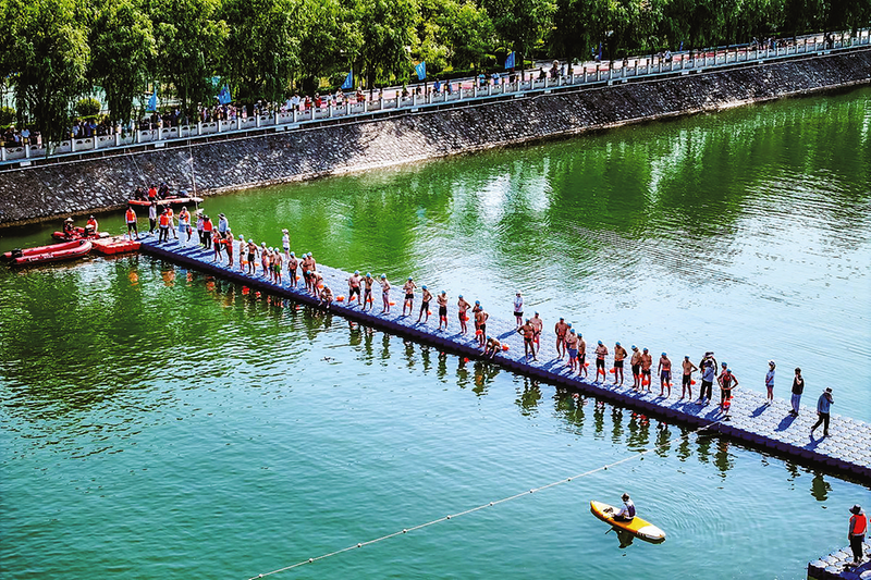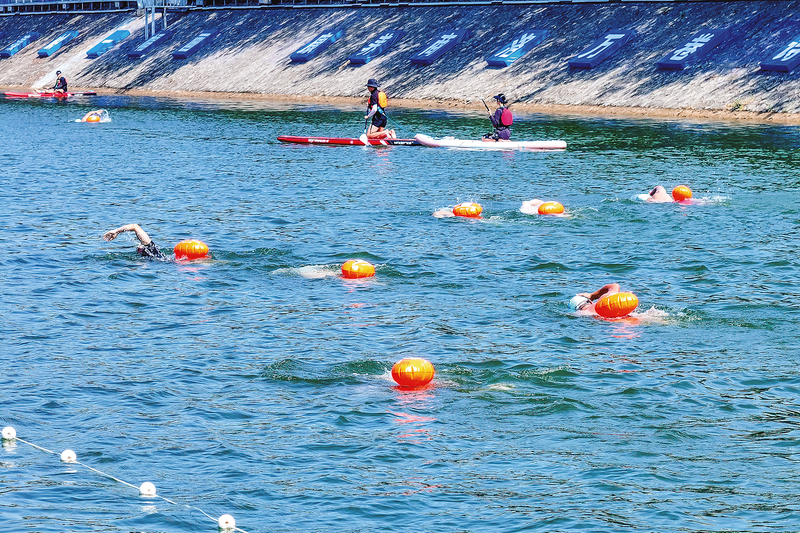 優(yōu)越的自然資源條件是承載文化旅游、體育運動、休閑康體等產(chǎn)業(yè)協(xié)同發(fā)展,開展水上活動的絕佳場所。當天賽場艷陽高照,江面水溫約26攝氏度,在美麗的丹江河里暢游,參賽選手們興奮不已。