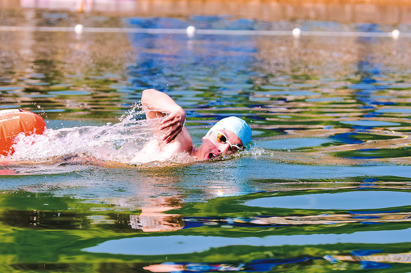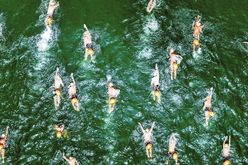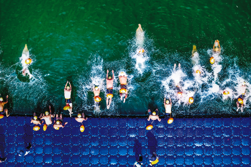 比賽開始,參賽選手們紛紛躍入“天然泳池”,場上水花四濺,選手們的矯健身姿在碧波中呈現(xiàn)出一道道速度與技術(shù)較量的風景線。外劃、前伸、收腿、翻轉(zhuǎn)……選手們泳姿嫻熟,技巧精湛,調(diào)整呼吸,不斷加速,宛如一條條銀魚穿梭在賽道中,全神貫注向著勝利的終點沖刺,他們你追我趕、奮勇拼搏,現(xiàn)場吶喊聲、歡呼聲不斷。