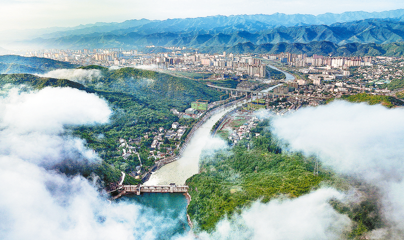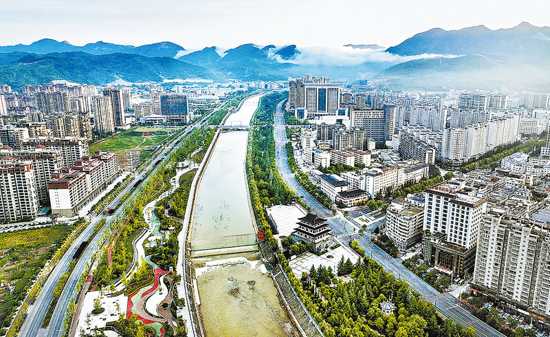 云霧繚繞下的商州中心城區(qū)分外美麗