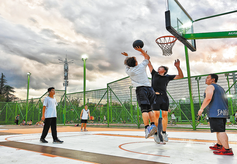 傍晚,籃球場上活力四射、激情飛揚(yáng)。