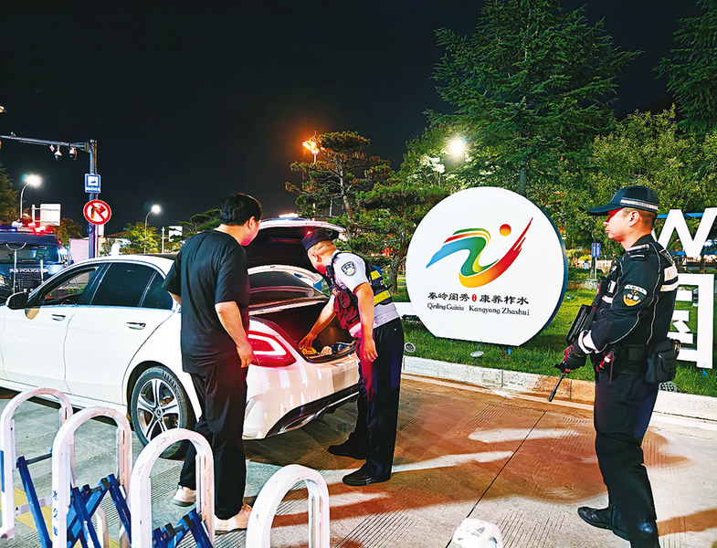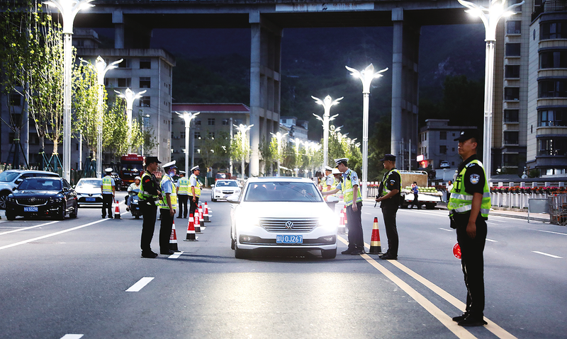 8月10日晚,柞水縣公安局巡特警大隊民警在桃園公安檢查站設(shè)卡盤查過往車輛和司乘人員。 (本報通訊員 李武群 攝)